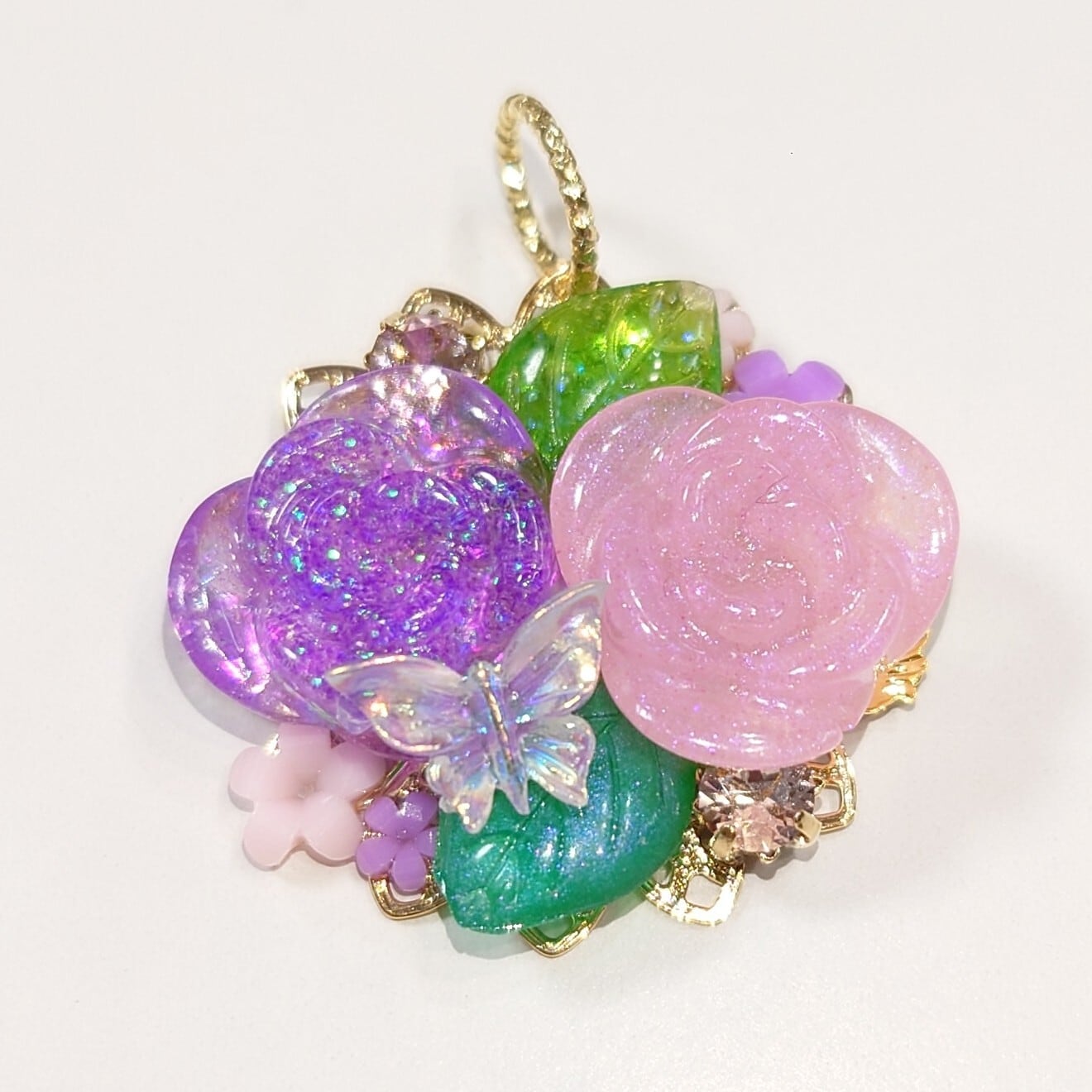 ハンドメイドで作成したピンクが基調のペンダントトップです。独自の色合いがあなたのコーディネートに華やかさをプラスし、特別な存在感を演出します。