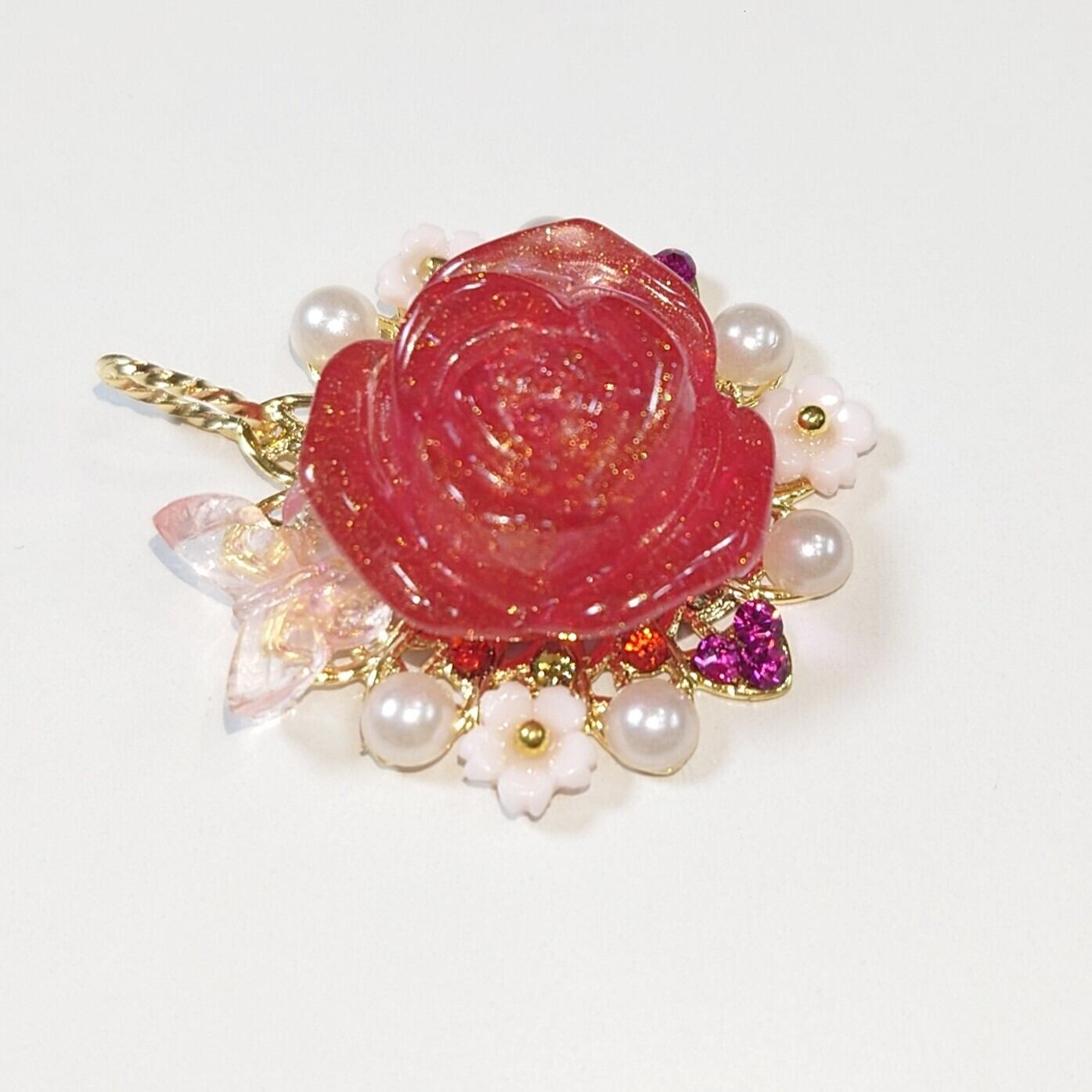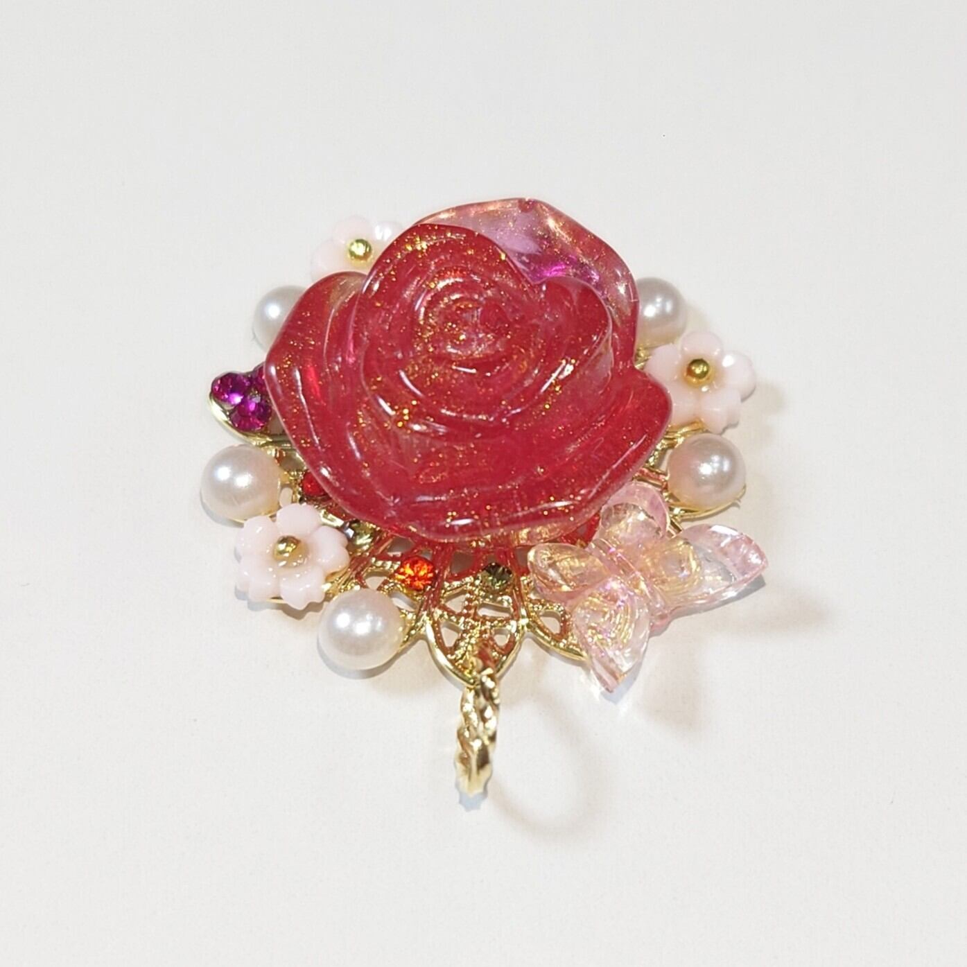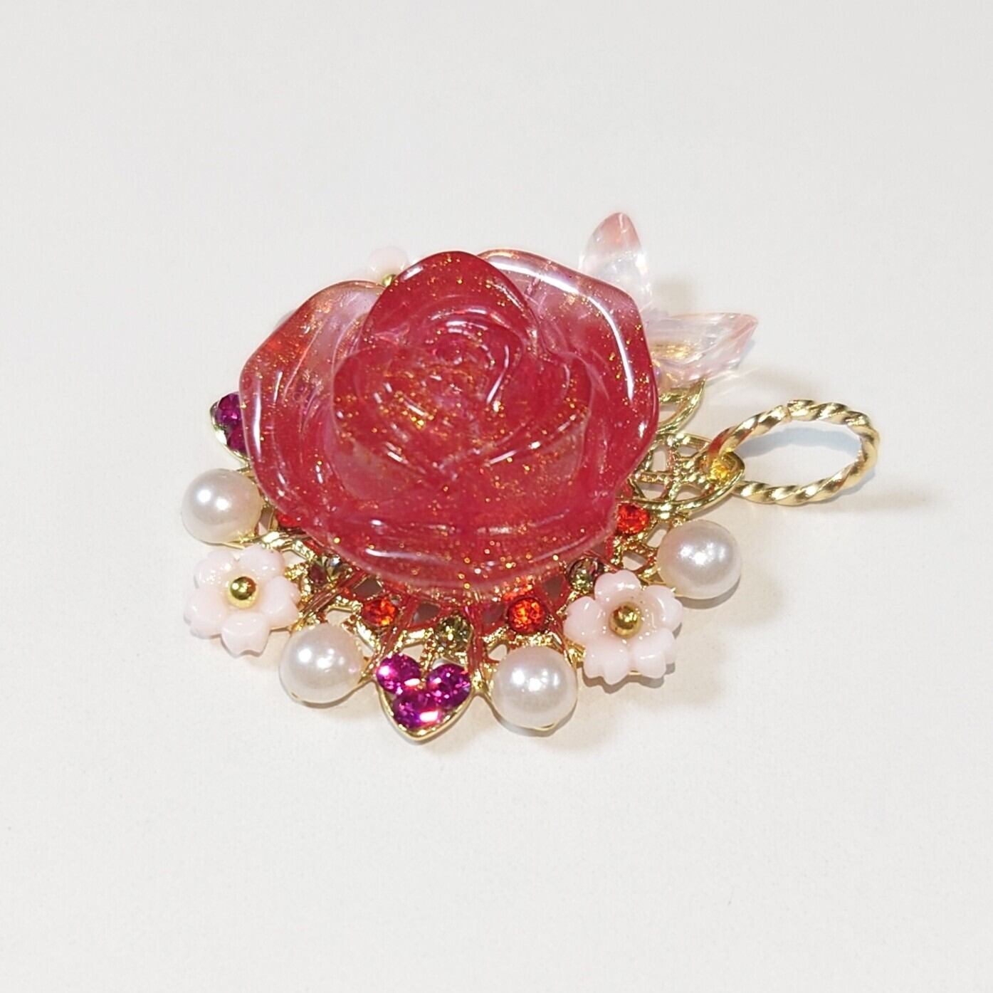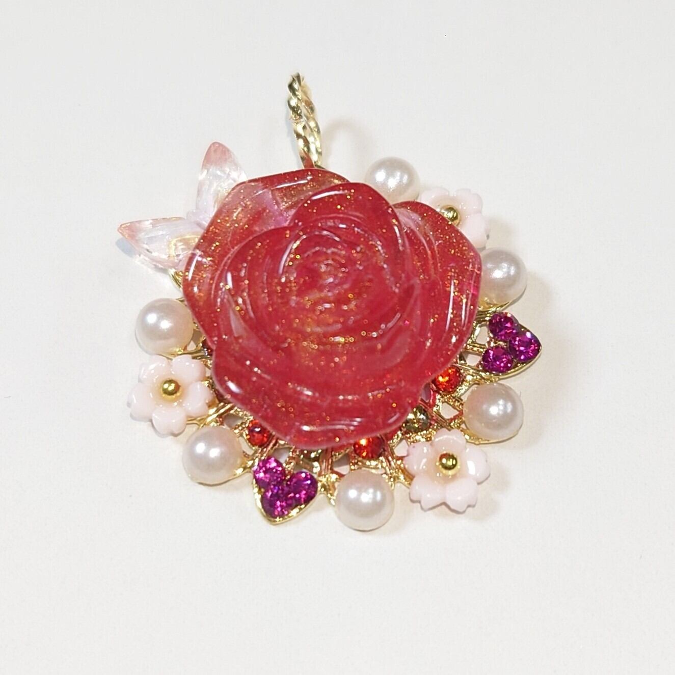 ハンドメイドで作成した鮮やかな赤色が魅力のペンダントトップです。鮮やかな色合いが、あなたのコーディネートに力強いアクセントを加え、特別な瞬間を華やかに彩ります。