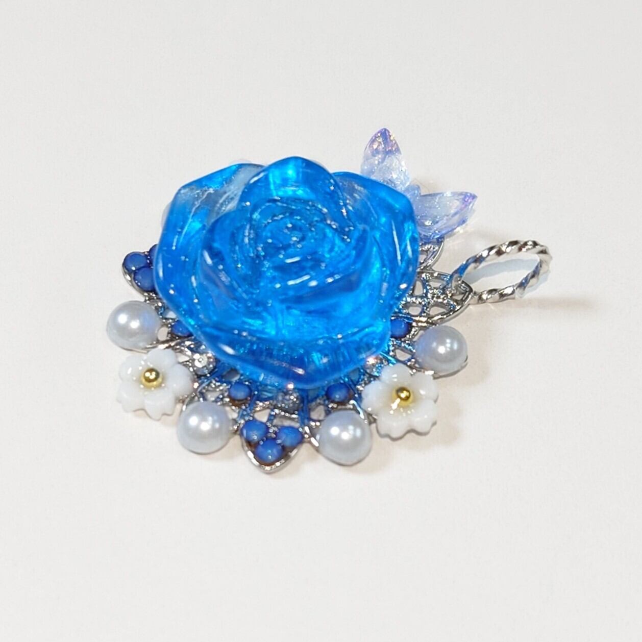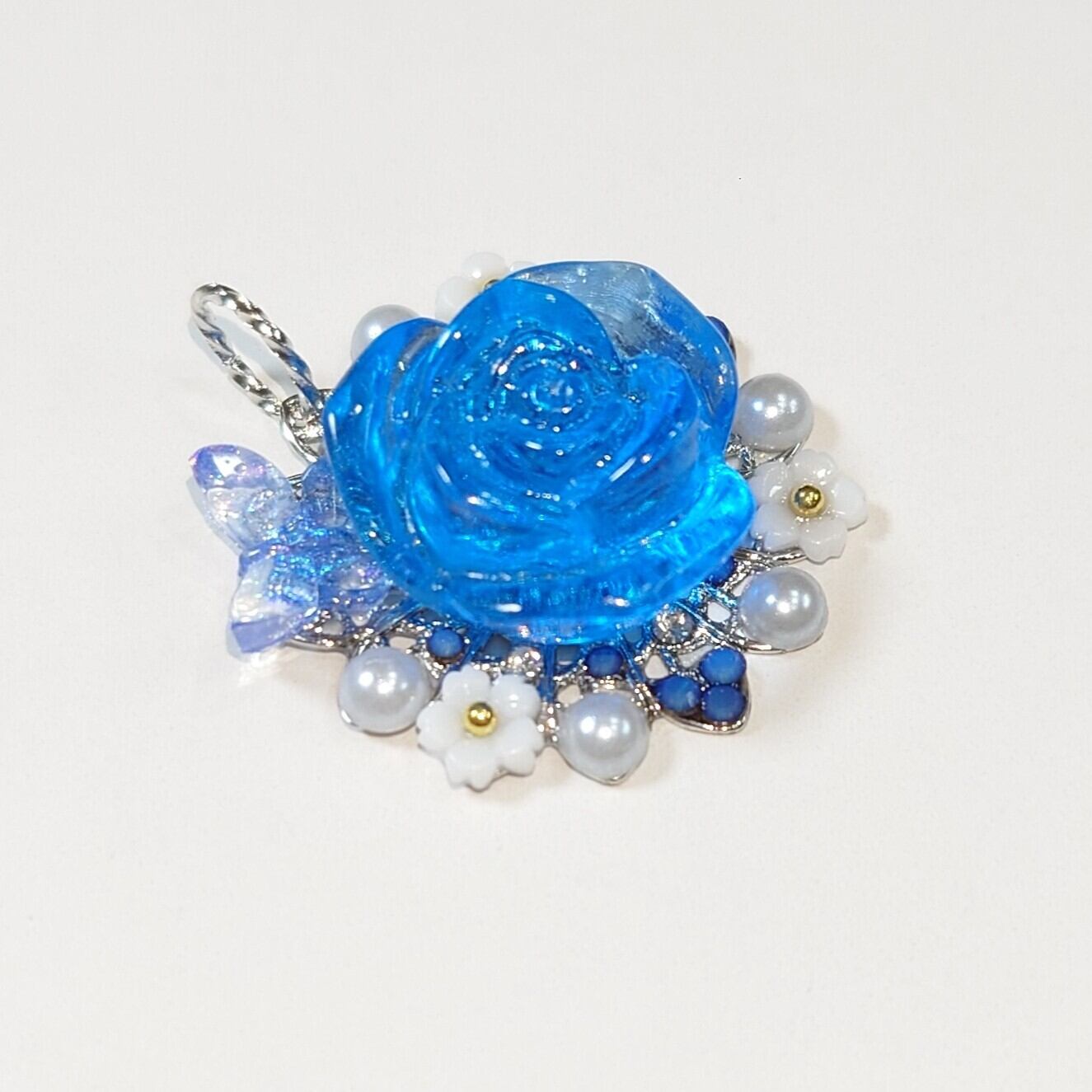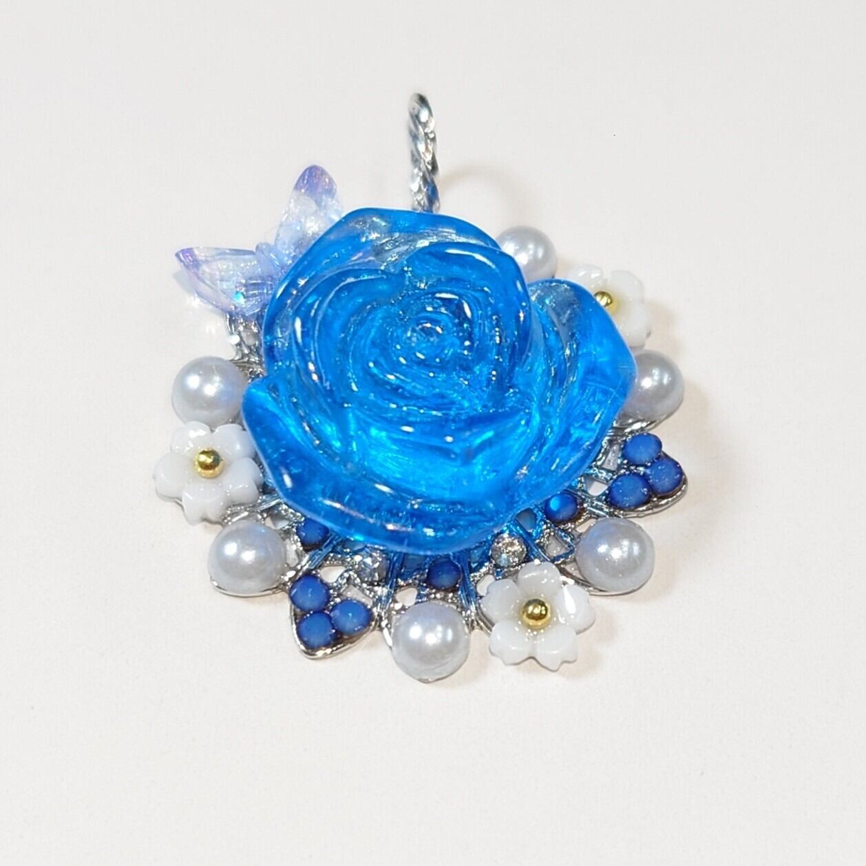 ハンドメイドで作成された、鮮やかな青色が際立つペンダントトップです。美しい青色が、あなたのコーディネートに洗練されたアクセントを加え、印象深く演出します。